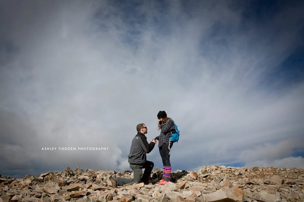 At the top, we took the obligatory photos with the Mt Sherman sign, catching our breath, and giving out high-fives. Then, Michael pulls Kayla over to the side, for a touch of privacy. As his exhausted legs wobble on the way down to one knee (hey - we just hiked 14,000 feet!) he took her hand and spoke the words that every woman dreams about. I am so honored to have been chosen to capture the emotion of their proposal - two humans who are are meant to be together for the rest of their lives. I cried. (duh).